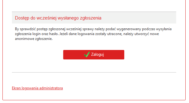 - Dostęp do zgłoszenia uzyskasz podając dane logowania wygenerowane po wysłaniu.